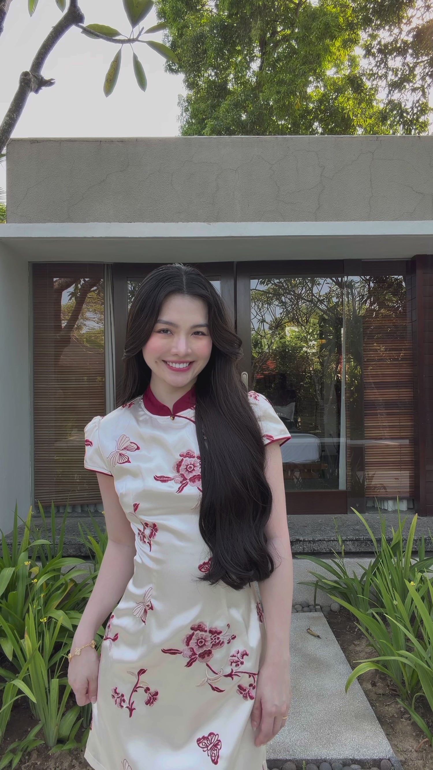 DREAMING BUTTERFLY IVORY SHORT CHEONGSAM 梦蝶庄周 SC1005