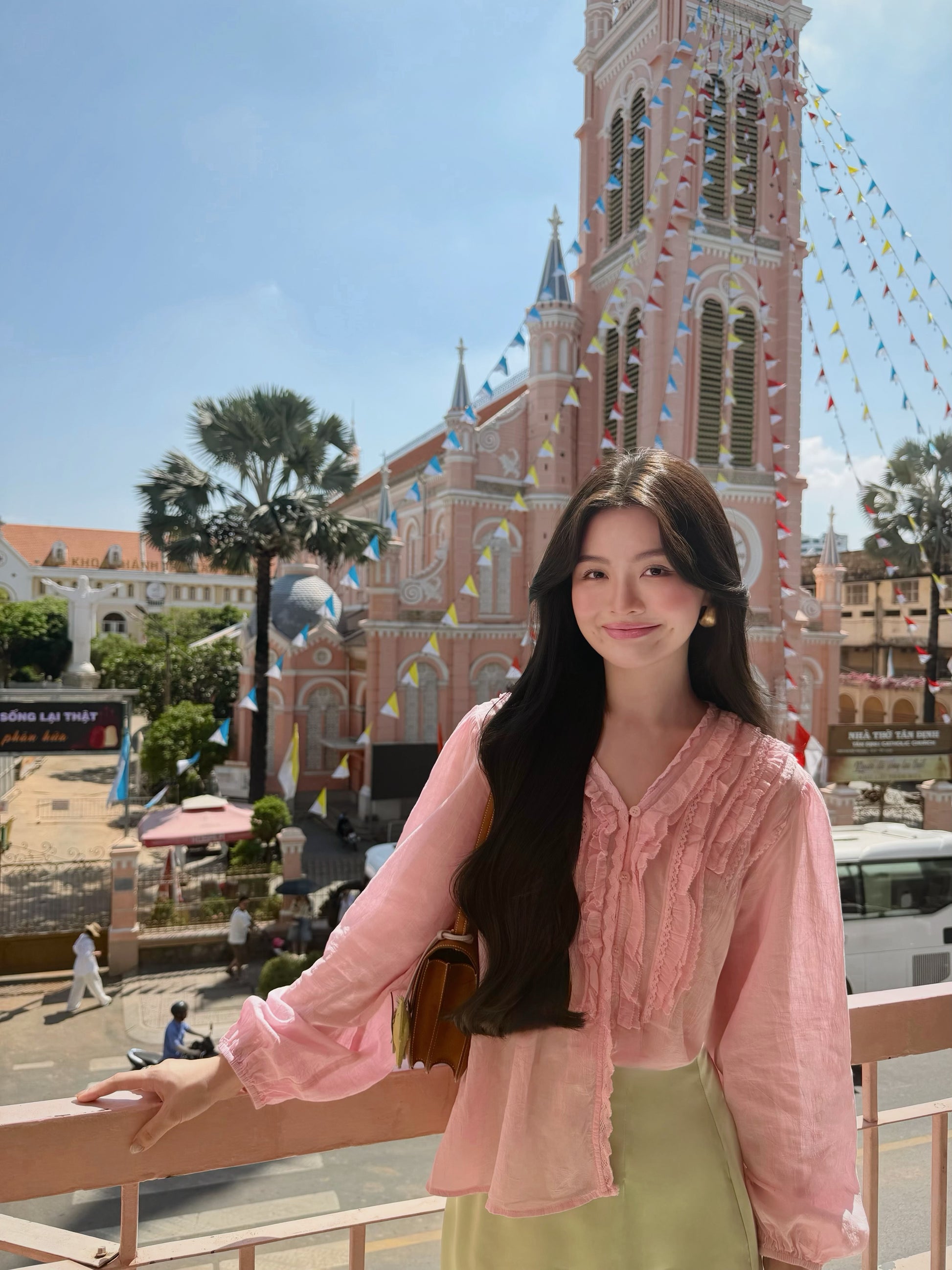 • White lace trim at hem