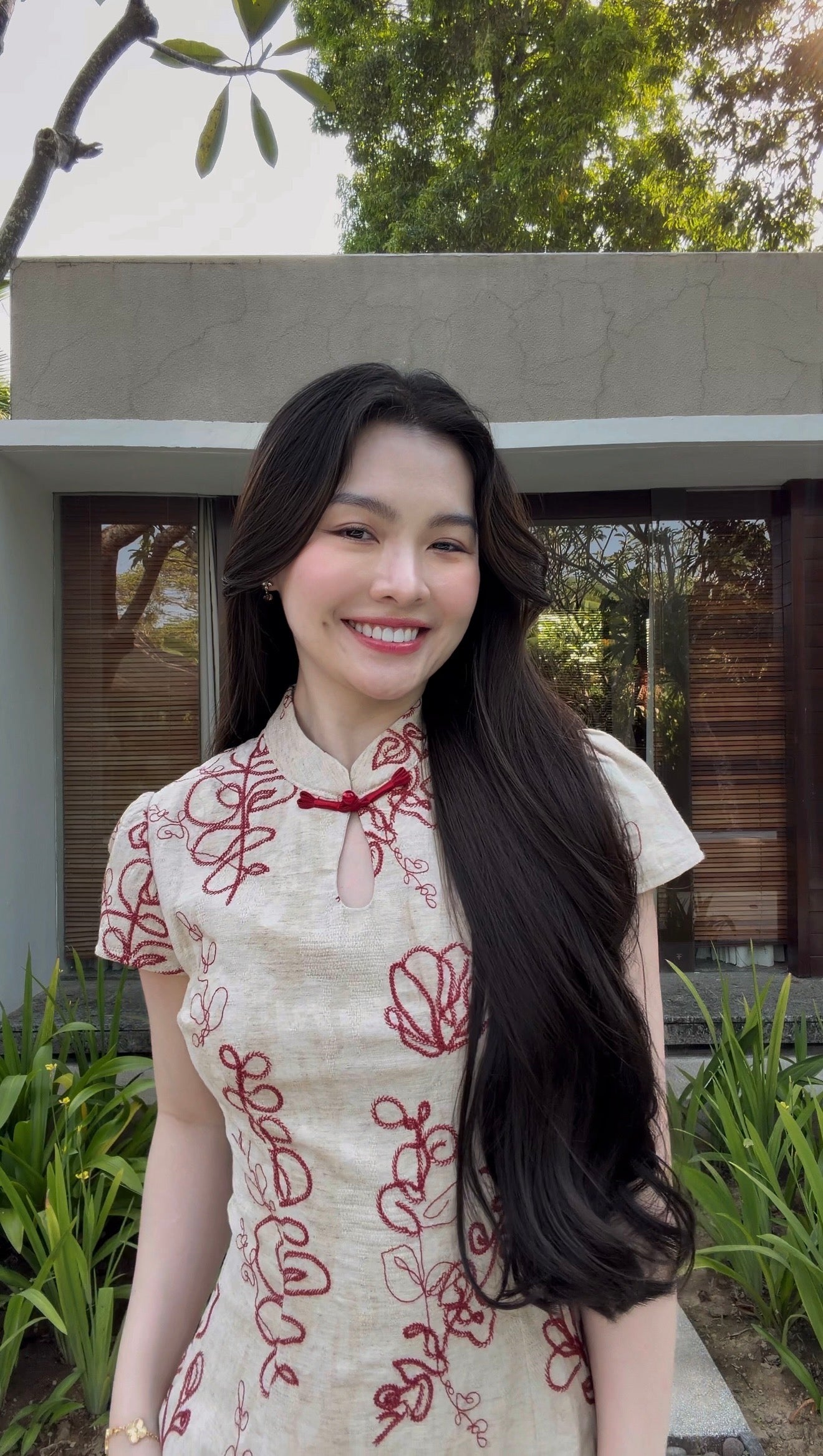 • Red embroidery adds a graceful contrast, infusing the neutral base with festive warmth and oriental charm.