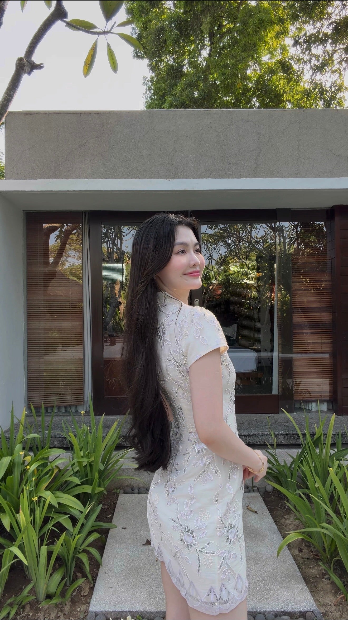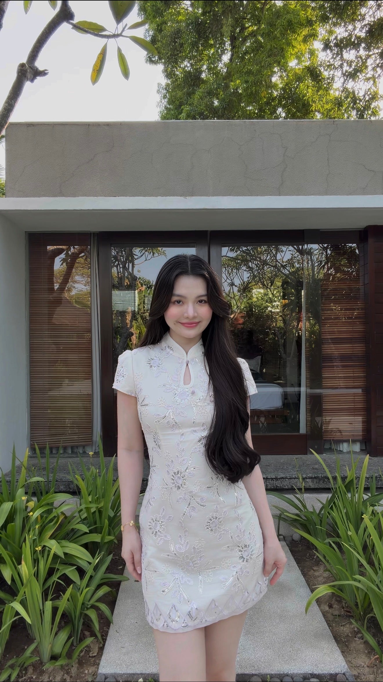 SHIMMERING WHITE SEQUIN EMBROIDERED SHORT CHEONGSAM 鳞光闪烁 SC1009